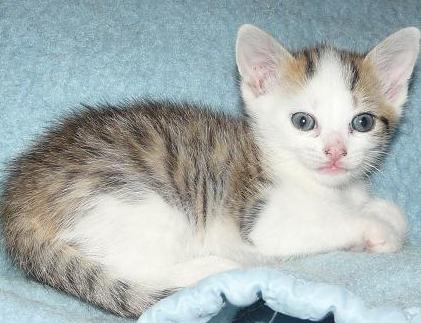 IZIA est un chaton femelle tigrée et blanche de 2mois. Trouvée à l'âge de 8jours dans un buisson avec sa maman et ses 4 frères et soeurs.